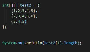 test2[1]의 길이는 {2,3,4,5,6}의 길이를 가리키기 때문에, 5입니다.
