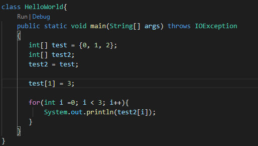 이렇게 하면 3개의 배열 요소가 생성되어 배열 변수에 저장됩니다.