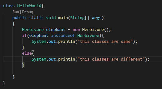 이 연산자를 사용하면 왼쪽에 있는 객체가 오른쪽에 있는 클래스와 타입이 같은지를 알 수 있습니다.
